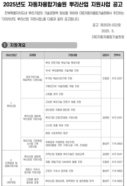 공지사항2025년도 자동차융합기술원 뿌리산업 지원사업 공고(1차접수 : ~2025.06.04.까지) 관리자2025-05-22조회 402 자세한 사항은 JIAT 자동차융합기술원 << 을 클릭하시면 사업신청 사이트로 이동 됩니다. 이전글 이전글이 없습니다. 다음글 다음글이 없습니다. 목록보기